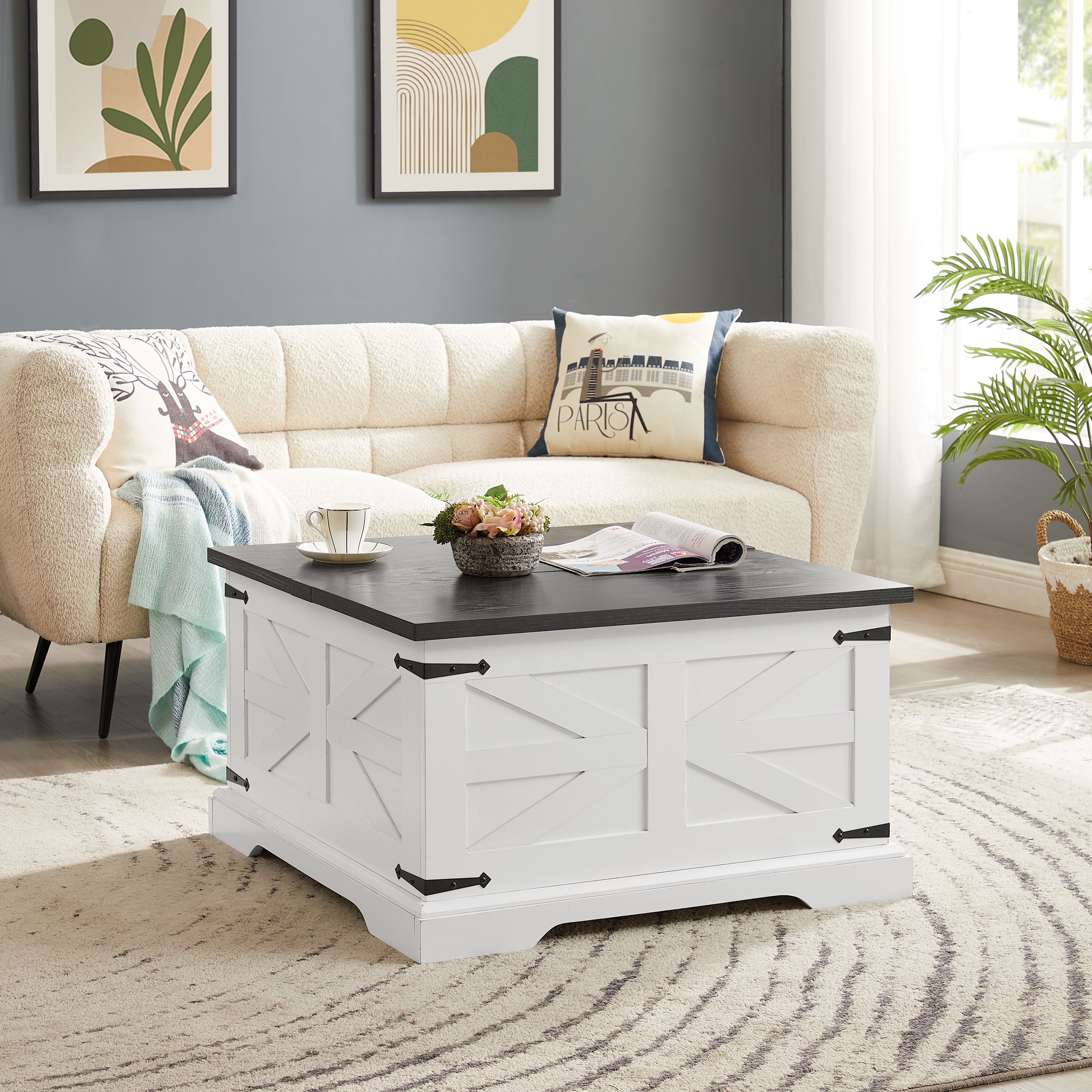 Farmhouse Coffee Table, Square Wood Center Table with Large Hidden Storage Compartment for Living Room Farmhouse Coffee Table, Square Wood Center Table with Large Hidden Storage Compartment for Living Room Farmhouse Coffee Table, Square Wood Center Table with Large Hidden Storage Compartment for Living Room