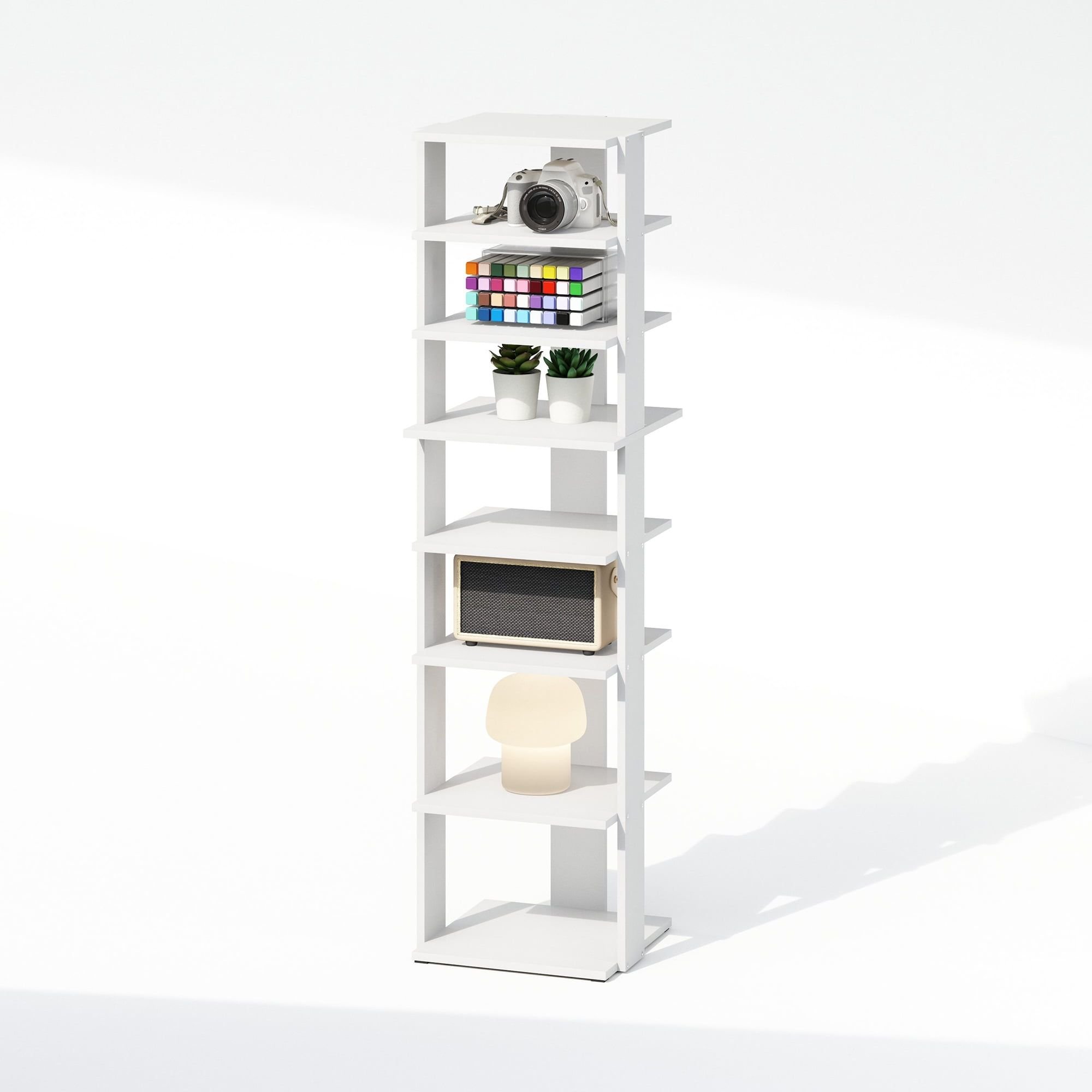 Home > Compact 8-Tier Vertical Space Saving Free Standing Corner Shelf, Display Rack, White
