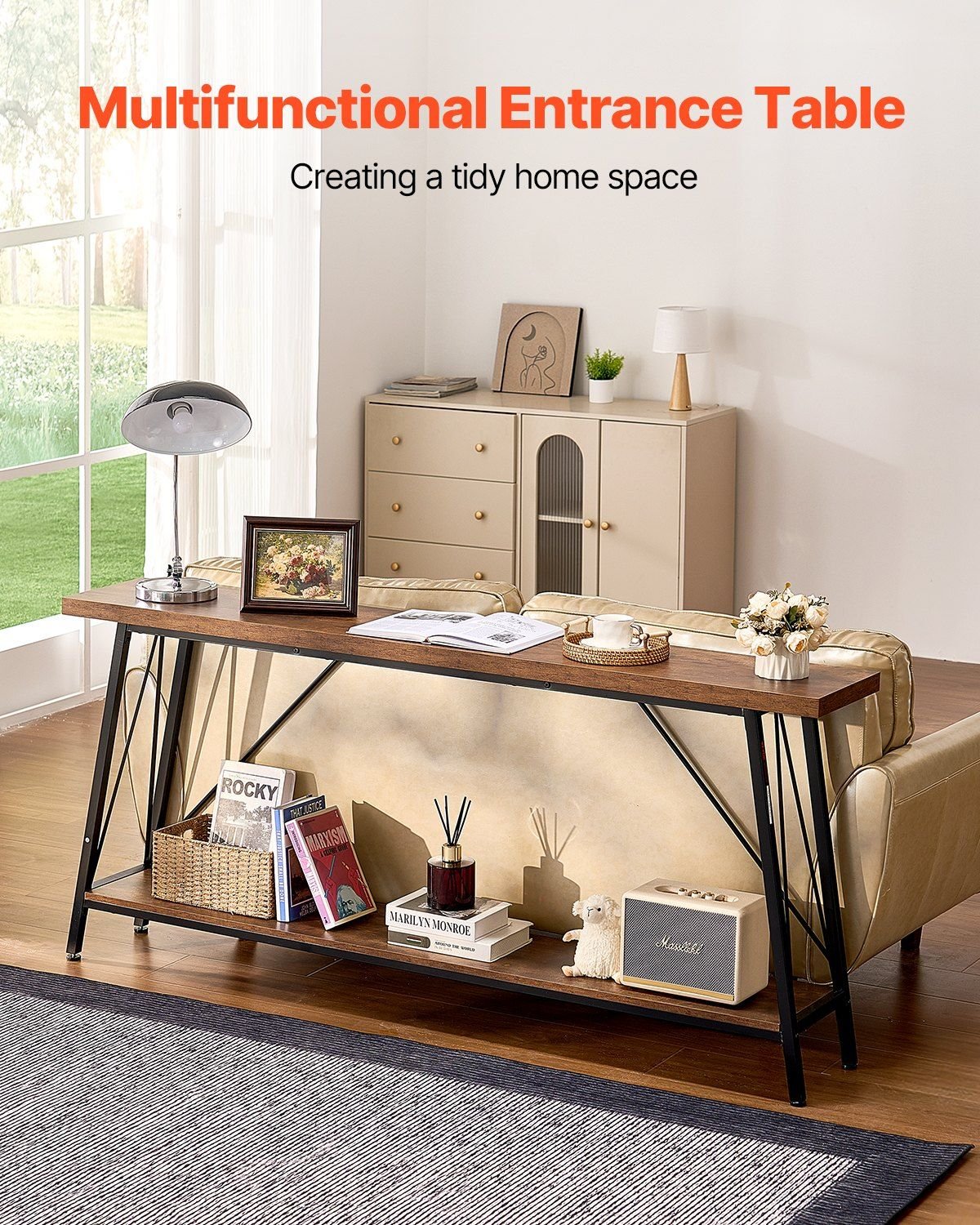 VEVOR Narrow Console Sofa Table, 70.9 inches Behind Couch Table, 2-Tier Long Entryway Table and Skinny Hallway Table, Narrow Sofa Table with Metal Frame, for Entryway, Hallway, Living Room & Bedroom