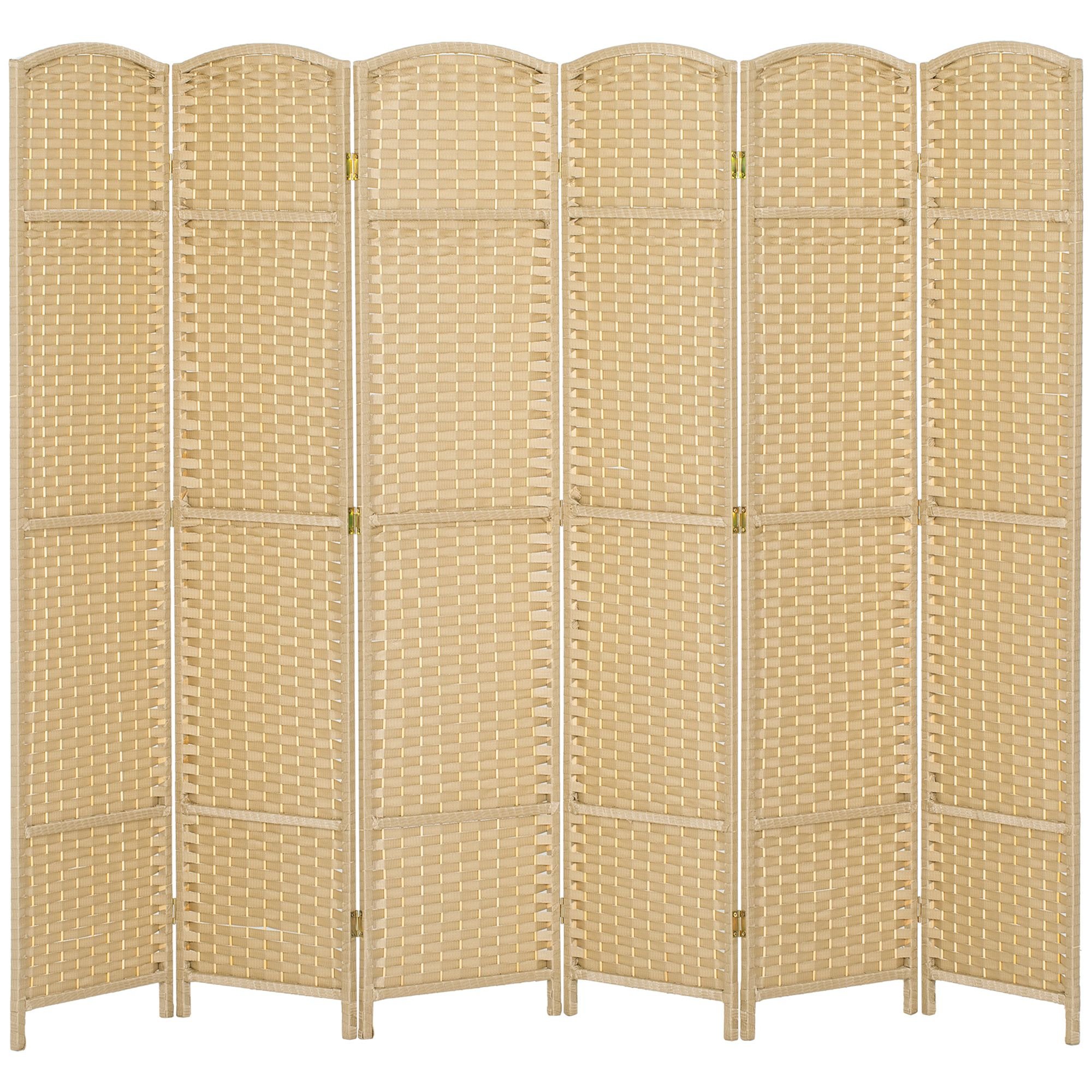 Transform your space with ease using this room divider screen from HOMCOM. Its polypropylene build assures superior privacy and strength compared to traditional paper fiber. This portable wall marries functionality with fashion with a stylish six-panel folding design accented by 15 metal hinges. An elegant arched pine wood frame and polypropylene weave make the HOMCOM folding screen a chic partition for any area needing privacy.