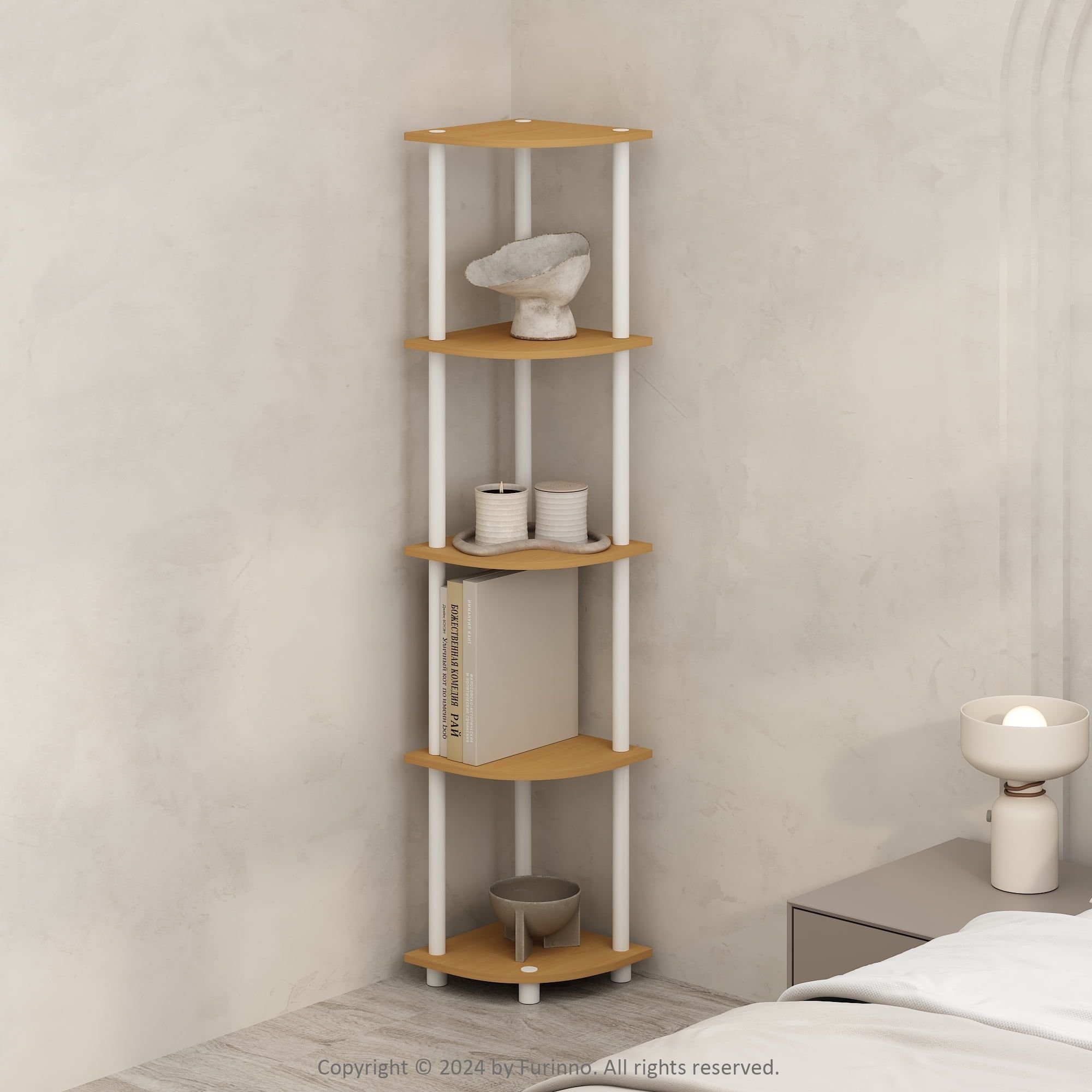 Turn-N-Tube 5 Tier Multipurpose Corner Display Rack Shelving Unit, Beech/White