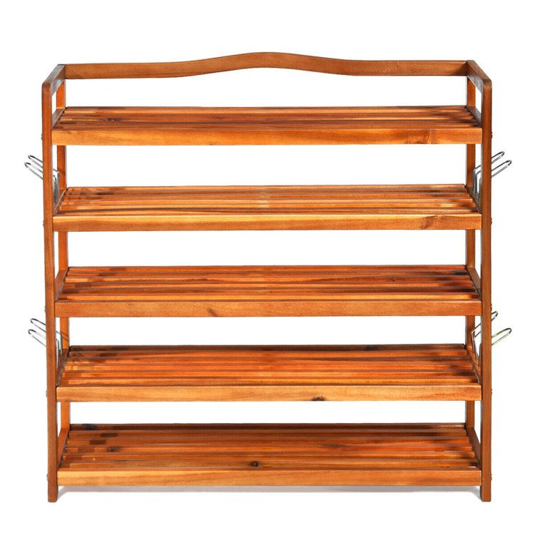2.Sturdy and Durable Frame: The shoe rack is made of FCS-certified Acacia woods, which is hard, corrosion resistant and durable for long-time use. The boards are fixed with galvanized steel screws to ensure a firm and stable structure. The connection of twin screw strengthens the stability of the shoe rack so that each layer can bear up to 180 pounds.